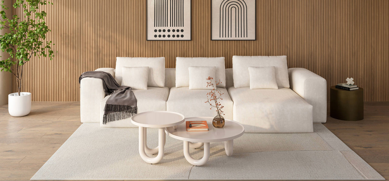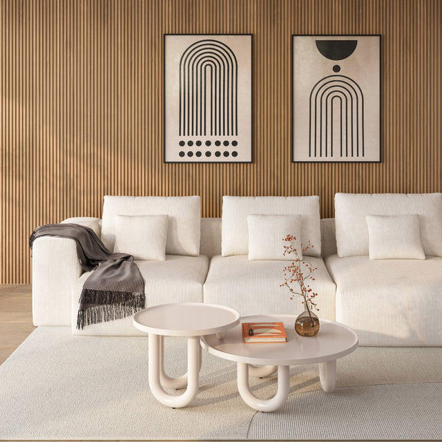 The Cielo Sectional Sofa in Ivory is a modern blend of style and comfort, designed to elevate any living space. Featuring a sleek squared back and arms, it exudes contemporary elegance while providing ample support. Upholstered in luxurious ivory corduroy, the sofa offers a soft, textured feel that complements its minimalist aesthetic. A standout feature is the extended end seat, which is approximately 7 inches longer, creating the perfect spot for lounging or stretching out. With its clean lines and functional design, the Cielo Sectional Sofa effortlessly combines beauty and versatility for a truly inviting seating experience.