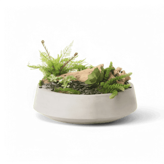 The Bliss Arrangement is a stunning, lifelike plant display designed to bring natural beauty into any space. This meticulously crafted arrangement features a harmonious blend of lush greenery, succulents, driftwood, and decorative stones, creating a serene and organic aesthetic.