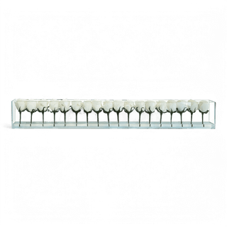 White Roses are the perfect finishing touch to elevate any room. We've imagined a unique spin on the classic bouquet, presenting beautiful close-cropped blooms in a linear display. Each of 48 flower is stunningly showcased within a contemporary rectangular glass vase.