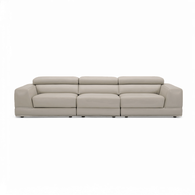 Indulge in luxury and style with the Amadeo 3-Piece Modular Sofa in Light Gray, where sophistication meets comfort in perfect harmony. Wrapped in sumptuous Italian leather upholstery, the Amadeo sofa boasts a timeless appeal, offering both durability and unmatched comfort. Enveloped in sumptuous light gray leather upholstery, the Amadeo sofa exudes a refined charm while offering a soft and inviting feel. Enhancing your comfort further, the Amadeo sofa comes equipped with manually adjustable headrest and seat slider on the end seats, allowing you to customize your seating experience to your preference.