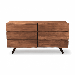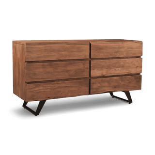Solid Acacia Wood with Brown Finish, Live Edges Drawers Front, Black Powder Coated Metal Legs, 6 Drawers with Side Drawer Slides, Weight Capacity: 200 lbs