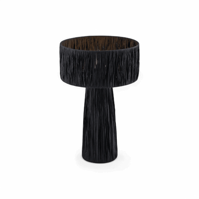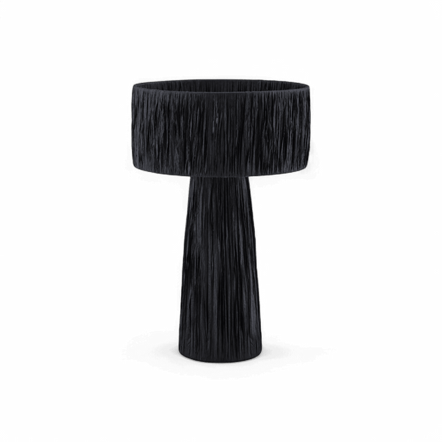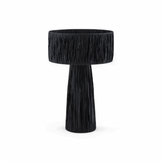 Illuminate your space with the Auric Raffia Black Table Lamp. Its textured raffia base and modern design bring a touch of warmth and style to any room.
