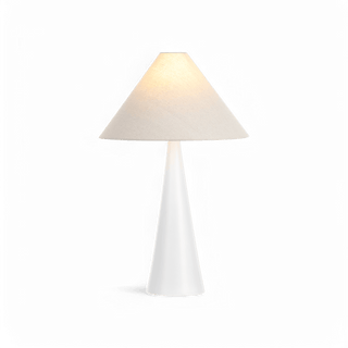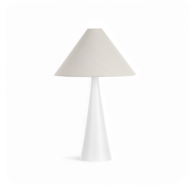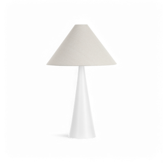 The Acela Table Lamp is a refined and timeless piece that is a versatile addition to any interior. Standing at approximately 26 inches tall, this lamp features a sleek, white base with a smooth, tapered silhouette that exudes a clean and minimalist aesthetic. Topping the base is a wide, conical shade in a warm oatmeal color. The shade's slightly textured fabric diffuses light gently, casting a soft, ambient glow that creates an inviting atmosphere in any room.