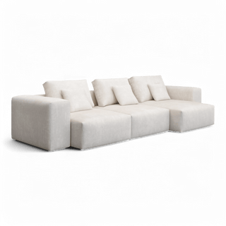 The Cielo Sectional Sofa in Ivory is a modern blend of style and comfort, designed to elevate any living space. Featuring a sleek squared back and arms, it exudes contemporary elegance while providing ample support. Upholstered in luxurious ivory corduroy, the sofa offers a soft, textured feel that complements its minimalist aesthetic. A standout feature is the extended end seat, which is approximately 7 inches longer, creating the perfect spot for lounging or stretching out. With its clean lines and functional design, the Cielo Sectional Sofa effortlessly combines beauty and versatility for a truly inviting seating experience.