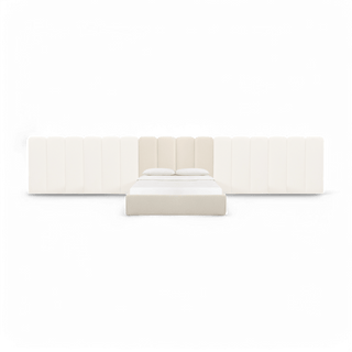 Boucle,Plywood | Includes the bed frame with 1 set of headboard wings for either side | Available in multiple colors and fabric options | Available in King or Queen sizes