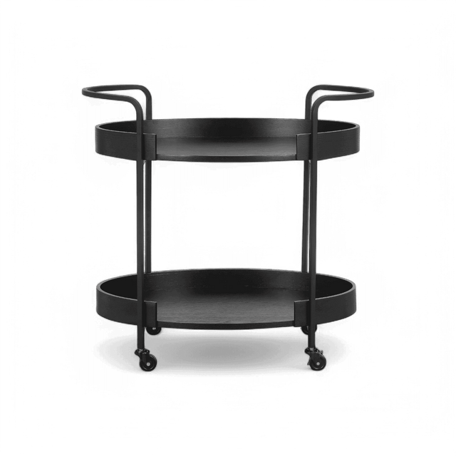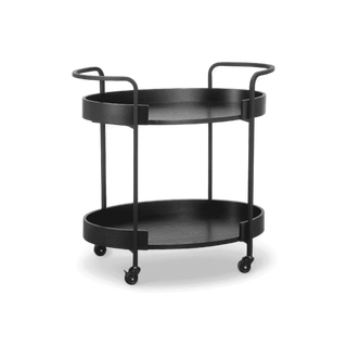 Transform your entertaining space with the Lattice Black Bar Cart. Designed for both style and utility, this cart features ample storage and smooth-rolling wheels, ensuring your favorite drinks and glassware are always within reach.
