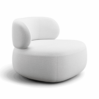 The Lilo Lounge Chair in Off White Boucle is the epitome of cozy sophistication. With its stylish design and inviting silhouette, this lounge chair features a rounded back and base that cradle you in comfort. Upholstered in soft, textured off white boucle, it brings a touch of modern elegance to any space. Its smooth swivel base adds functionality and versatility, making it perfect for lounging, reading, or unwinding in style. The Lilo Lounge Chair seamlessly blends comfort and contemporary charm, creating a standout piece for living rooms, bedrooms, or stylish office nooks.
