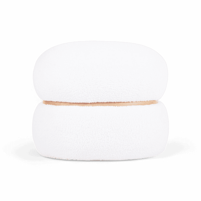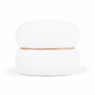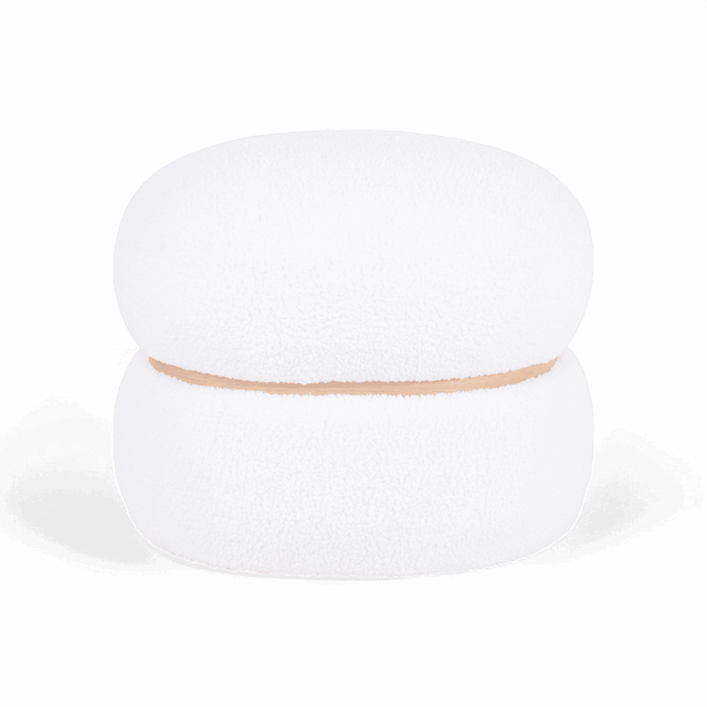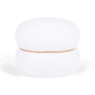 The Meteor White Vegan Shearling Ottoman offers cozy comfort with its soft, shearling-inspired fabric and unique oval shape. Ideal as a footrest or decorative piece for modern living spaces.
