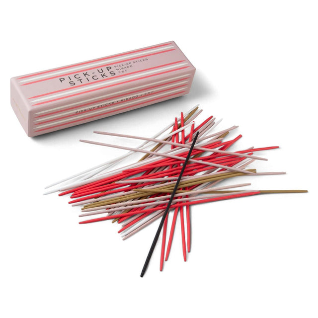 Your favorite childhood game Mikado - Pick up sticks with a new aesthetic twist. This game guarantees to give a playful color injection to any home interior. Our game includes 41 wooden sticks and easy to read instructions in English. French and German. Recommended for up to four players and ages 4+.