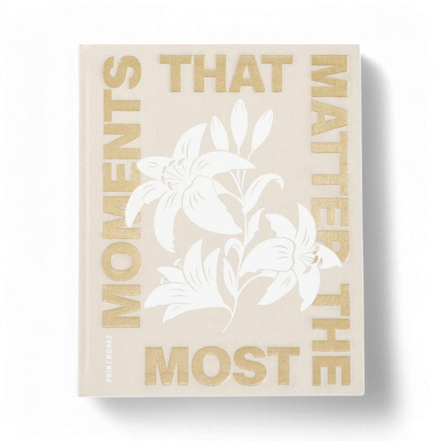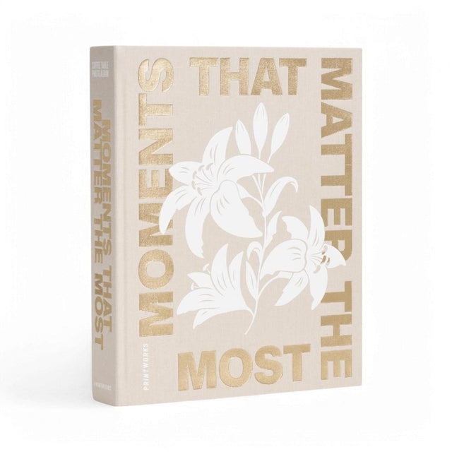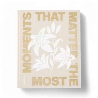 Discover our beautiful 'Moments Photo Album' Coffee Table Photo Album featuring an elegant beige cloth cover with gold foiled text. Inside, you'll find 30 pages of high-quality black photo paper, allowing you to attach your photos easily using our stickers or photo corners. It accommodates two 10x15 cm photographs on each page, with space for personal notes below. Please note that the album can accommodate a maximum of 40 pages. The photo paper size is 28x21 cm.