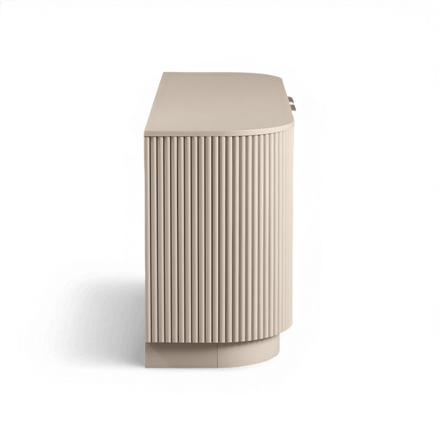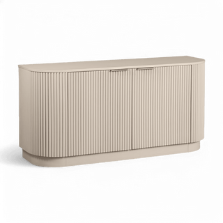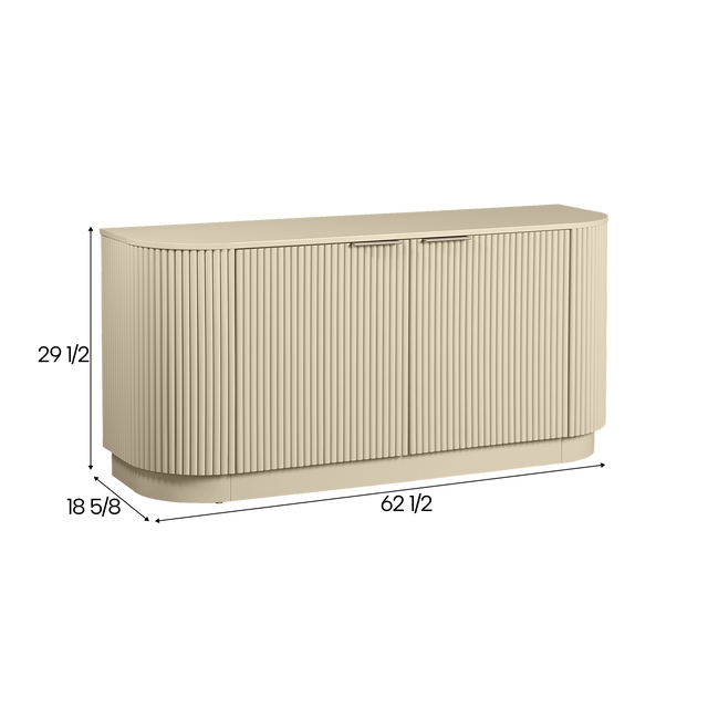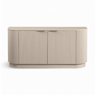 The standout feature is the vertical slat wood detailing on the sides and doors, lending texture and visual interest to its clean, modern lines. With its thoughtful design and versatile aesthetic, the Oxford Buffet Alabaster is perfect for storing and displaying essentials in dining rooms, living spaces, or entryways.