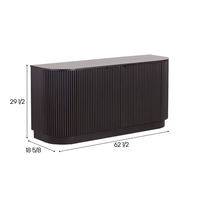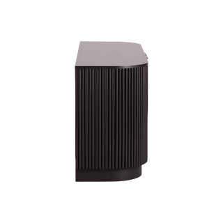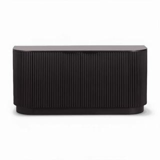 The buffet's softly rounded sides add a touch of refinement, creating a smooth silhouette that blends seamlessly into any space. The standout feature is the vertical slat wood detailing on the sides and doors, lending texture and visual interest to its clean, modern lines. With its thoughtful design and versatile aesthetic, the Oxford Buffet Black Wood is perfect for storing and displaying essentials in dining rooms, living spaces, or entryways.