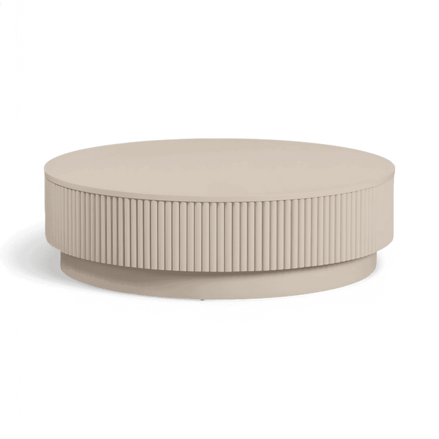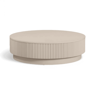 The Oxford Coffee Table in Alabaster is a stunning addition to any living space, showcasing a sleek round silhouette in a soft alabaster finish. Its striking sides feature an intricate vertical wood slat design, adding a touch of modern sophistication and texture. The Oxford Coffee Table serves as a stylish centerpiece while providing a functional surface for your favorite books, beverages, and decor. Its timeless design makes it a versatile piece that complements various decor styles, making it a perfect addition to your living area.