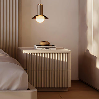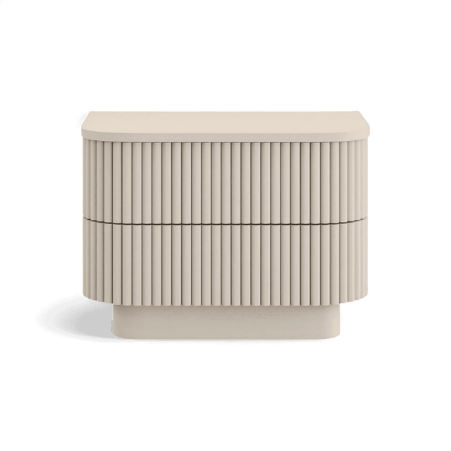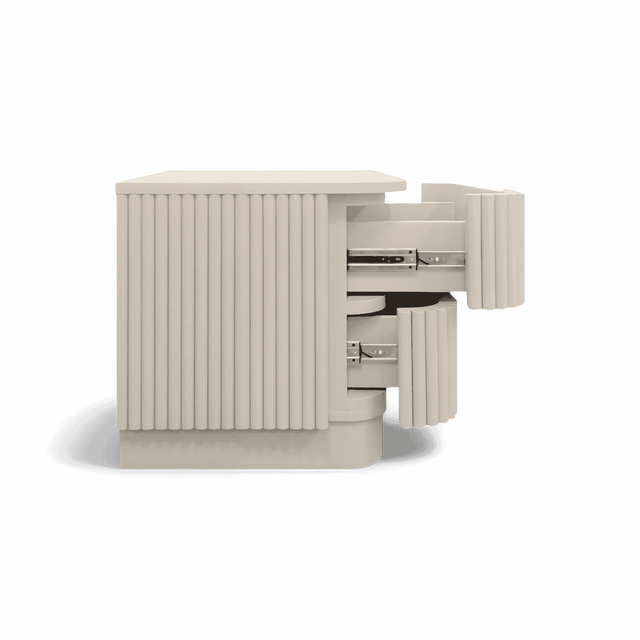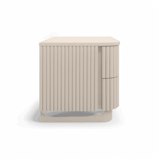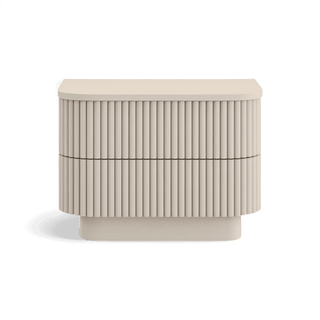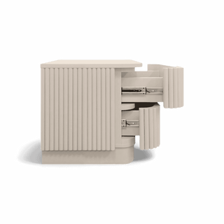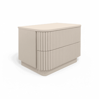 The nightstand features a gracefully curved front, adding a touch of refinement to its design. Two spacious drawers provide functional storage for bedside essentials, seamlessly combining beauty and utility. Whether paired with other alabaster-toned furnishings or used as a standout piece, the Oxford Nightstand creates a tranquil and inviting atmosphere in any space.