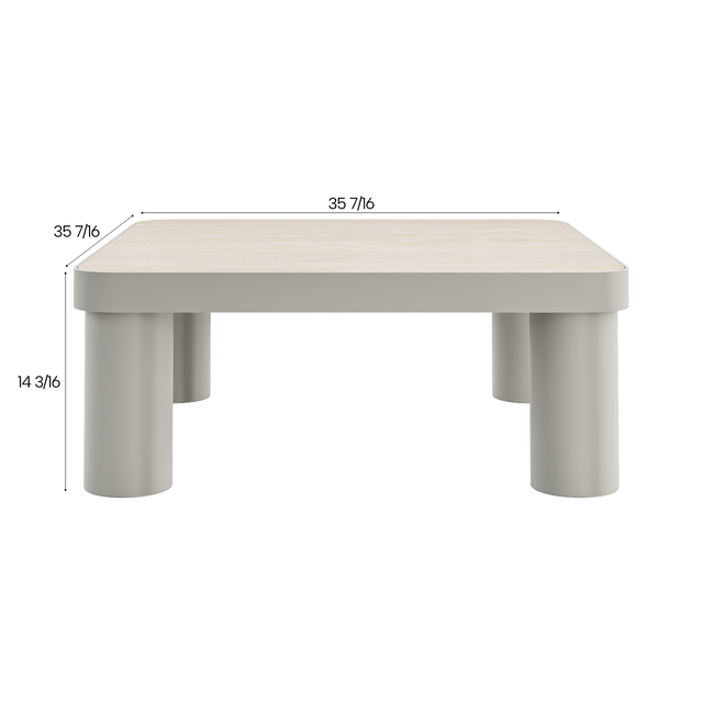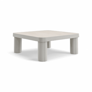 The Pebble Outdoor Coffee Table is a stylish and contemporary centerpiece for your outdoor space. Featuring a square-shaped design with gently rounded corner edges, it combines elegance with functionality. The modern cylinder-shaped legs provide stability and a sleek aesthetic, perfectly complementing the table's overall minimalist design. Finished in a light stone color, this coffee table exudes a natural, earthy vibe that blends seamlessly with various outdoor settings, from patios to garden lounges. Its durable construction ensures it withstands the elements while maintaining its refined look, making it an ideal choice for outdoor gatherings and relaxation.