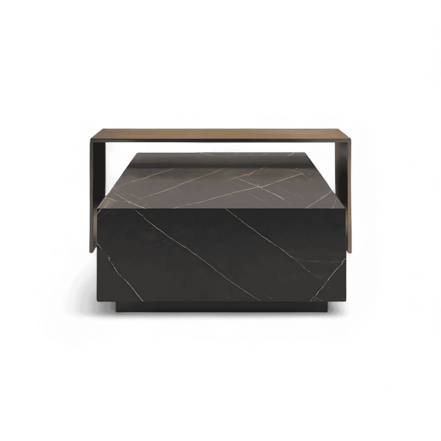 The Roma Coffee Table Black exudes modern elegance with its clean, rectangular silhouette and a luxurious black marbled finish. Its smooth surface creates a striking focal point, perfect for elevating any living space. The design is enhanced by the optional brass element that not only offers an elevated extra surface for functionality but also adds a touch of visual intrigue with its warm metallic sheen. Perfect for creating a chic and cohesive aesthetic, the Roma Coffee Table seamlessly blends form and function.