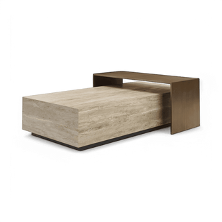The Roma Coffee Table Travertine exudes modern elegance with its clean, rectangular silhouette and a luxurious travertine marbled finish. Its smooth surface creates a striking focal point, perfect for elevating any living space. The design is enhanced by the optional brass element that not only offers an elevated extra surface for functionality but also adds a touch of visual intrigue with its warm metallic sheen. Perfect for creating a chic and cohesive aesthetic, the Roma Coffee Table seamlessly blends form and function.