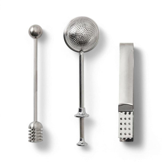 Set Includes: 1 Tea Tong, 1 Tea Diffuser, 1 Honey Dipper | Stainless Steel | Dishwasher Safe