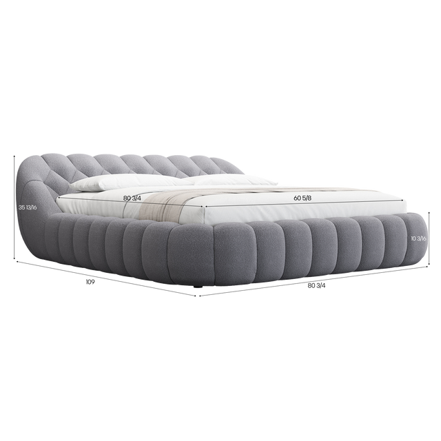 Transform your bedroom into a sanctuary of comfort and style with the Warby Bed in Gray Bouclé. This luxurious bed features a unique, sculptural design with rounded edges and a beautifully tufted texture that brings a soft yet striking presence to any space. The gray bouclé fabric adds an element of sophistication, creating an inviting, cloud-like retreat. Perfect for minimalist and modern interiors, the Warby Bed combines elegance with plush comfort, making it the ultimate centerpiece for your bedroom.
