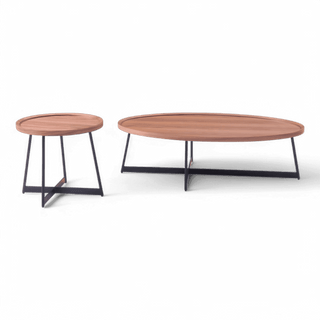 MDF Top Covered with Walnut Veneer, Metal Frame in Iron Lacquered in Matt Black Color