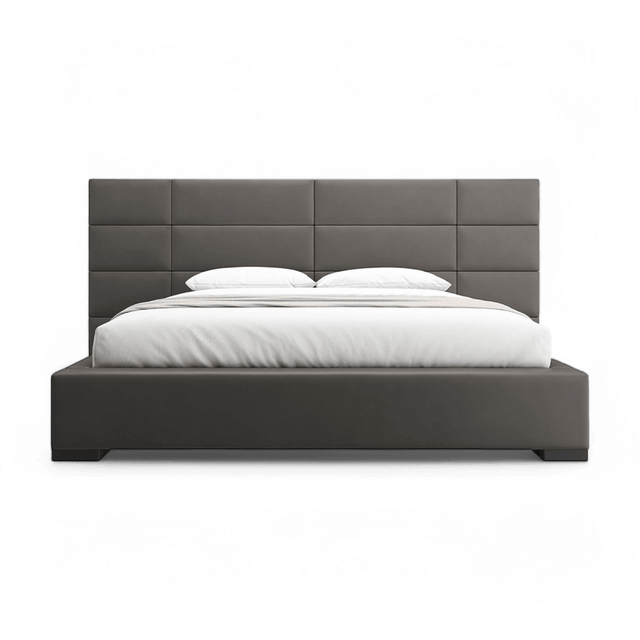 The grandeur of the oversized headboard on the William Bed in Gray will turn any space into a room fit for royalty. The sharp, clean lines and tufted, square panels add charisma and personality, while the padded cushioning lends support. The expansive frame has been covered in gray leatherette and is secured with exquisite stitching. Give your bedroom the contemporary upgrade it needs!